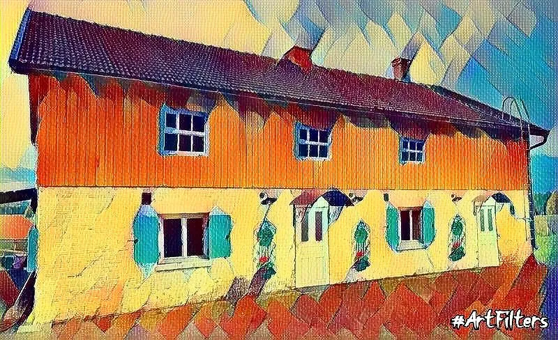 Nyt kun navetan piha ja julkisivu on vihdoin saatu siivottua kaikesta rojusta ja vallihaudasta kyhäsin kuvamuokkauksen artfiltterin läpi siitä mitä olemme sen julkisivuun suunnitelleet.