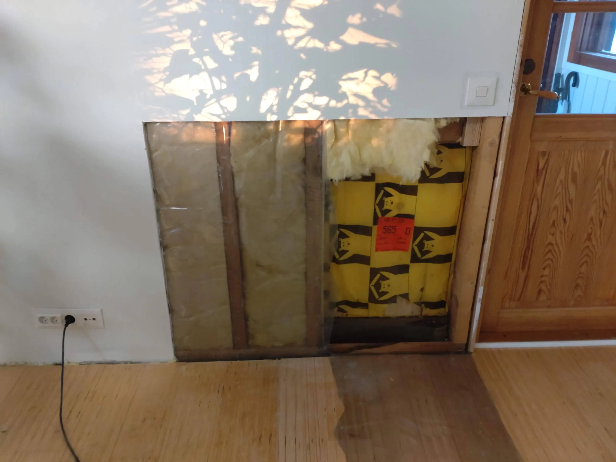 Nimittäin kuollut hiiri seinän sisässä. Näin voi käydä kun laittaa seinän ulkovuorauksen alapintaan jyrsijäverkon jottei hiiret kiipeäisi vintille. Eräs hyväkäs jäi loukkuun seinän sisälle ja näinhän siinä sitten kävi… Löyhkä oli sen mukainen.