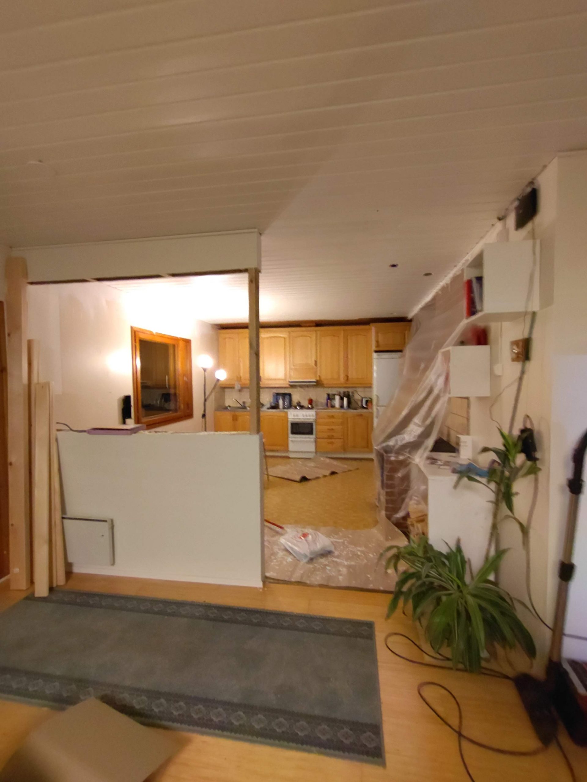 Osittain. Jätin kaappien päältä maalaamatta kun olisi mennyt turhan sotkuiseksi. Ehtii sitten kun menee kaapistot uusiksi.