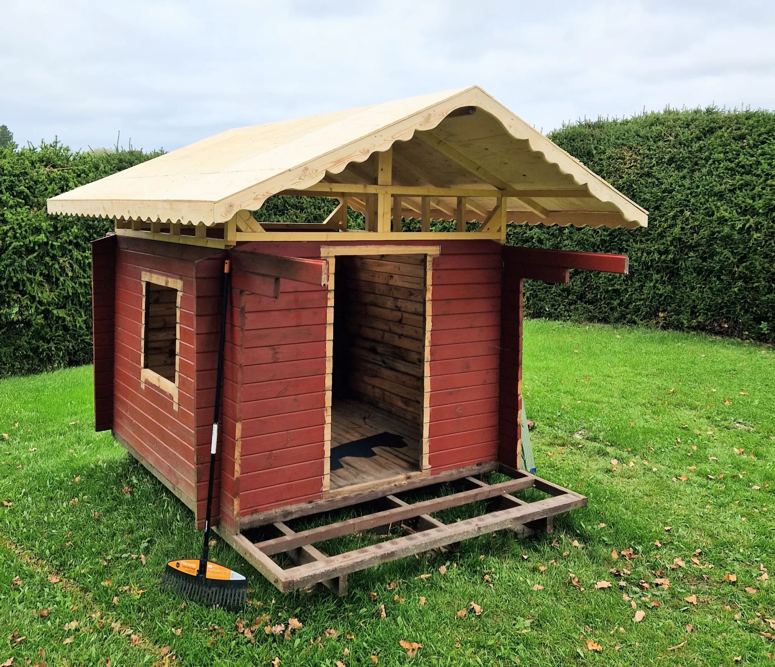 Pohjatyöt valmiina huopakaton asennusta varten. Ei vaan keritä tekemään sitä tällä viikolla koska sateet ja elämä joten tässä välissä vaan pressutetaan koko mökki.