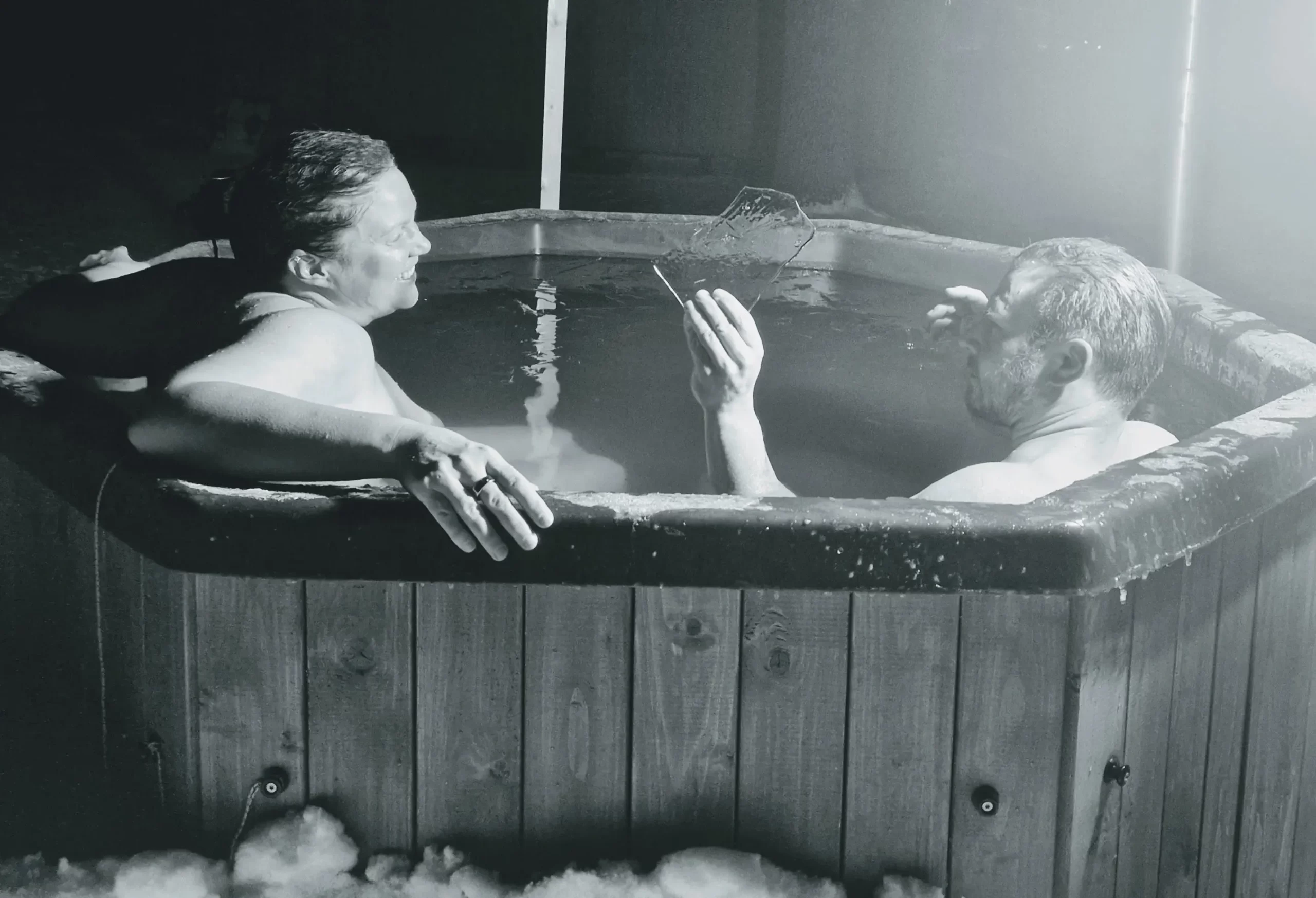 Nyt kuitenkin paljuttelu muuttunut pikkuhiljaa astetta haastavammaksi ja tänään oli eka kerta kun Jonas oli käynyt ottamassa paljusuojan sen verran aikaisin pois, että pintaan oli kerinnyt jo muodostumaan sellainen 4mm jääkerros kun vihdoin sinne pääsimme. Se ei kuitenkaan menoa hidastanut ja kaksi minuuttia kun tuli täyteen niin taas saunan lauteilla oli kaksi onnellista sivupolkujen kulkijaa (Jonas oli niin flunssainen, että ei tällä kertaa päässyt muuta kuin kuvaajaksi).
