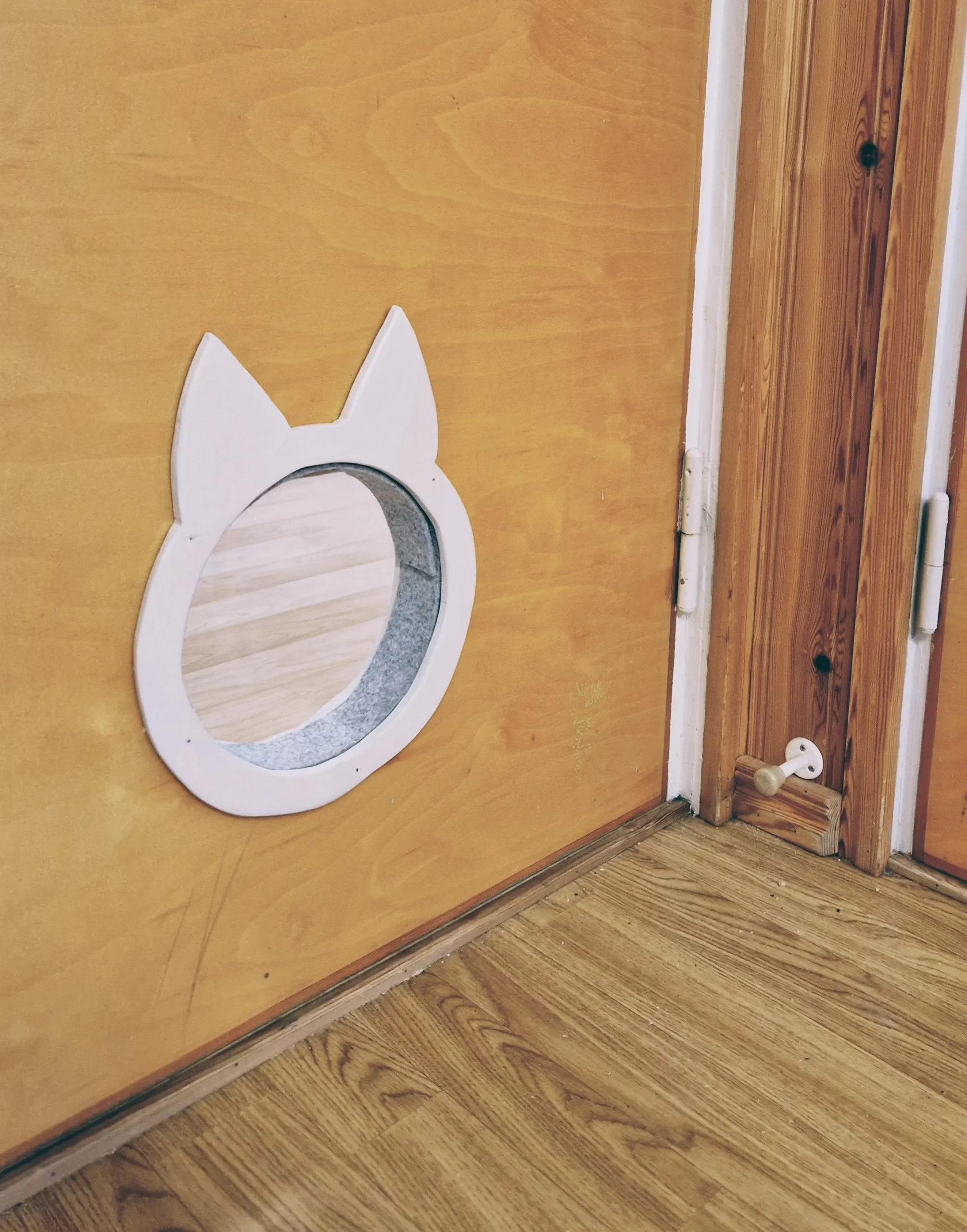 Tyypillisesti vielä ihan kesken mut en malttanut olla ottamatta jo kuvaa kun se on niin hauska. Hänen karvapyllyytensä pääsee nyt syömään, hiekkalaatikolle ja koiria pakoon ihan omin päin eikä tarvi niin paljoo aina komennella isäntiä ja emäntää availemaan ovia.