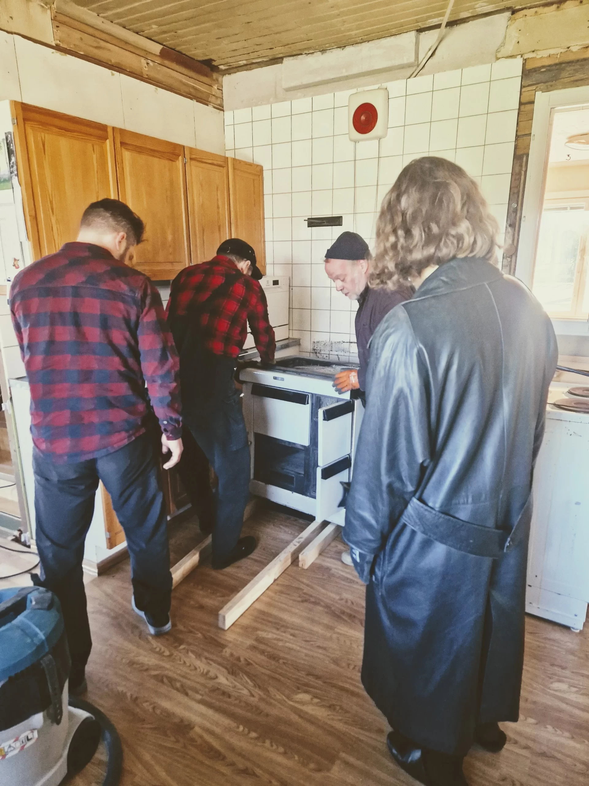 Meidän keittiössä ollut vanha Högforsin puuhella löysi uuden kodin Högforsin seuratalolta Karkkilasta. Hyvin lähti kärsivällisyydellä pakettiautoon vaikka painoikin pienen elefantin verran. Nyt voidaankin ryhtyä suunnittelemaan sitten pönttöuunia tilalle!